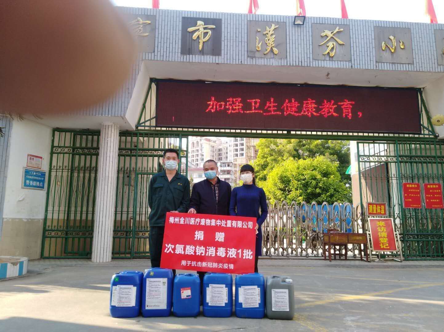 2020年2月22日,一場簡單而特殊的捐贈儀式在興寧市各大中小學(xué)舉行。為切實幫助學(xué)校復(fù)學(xué)做好防疫物資儲備,金川公司定向捐贈給轄區(qū)10所學(xué)校消毒液各一批。