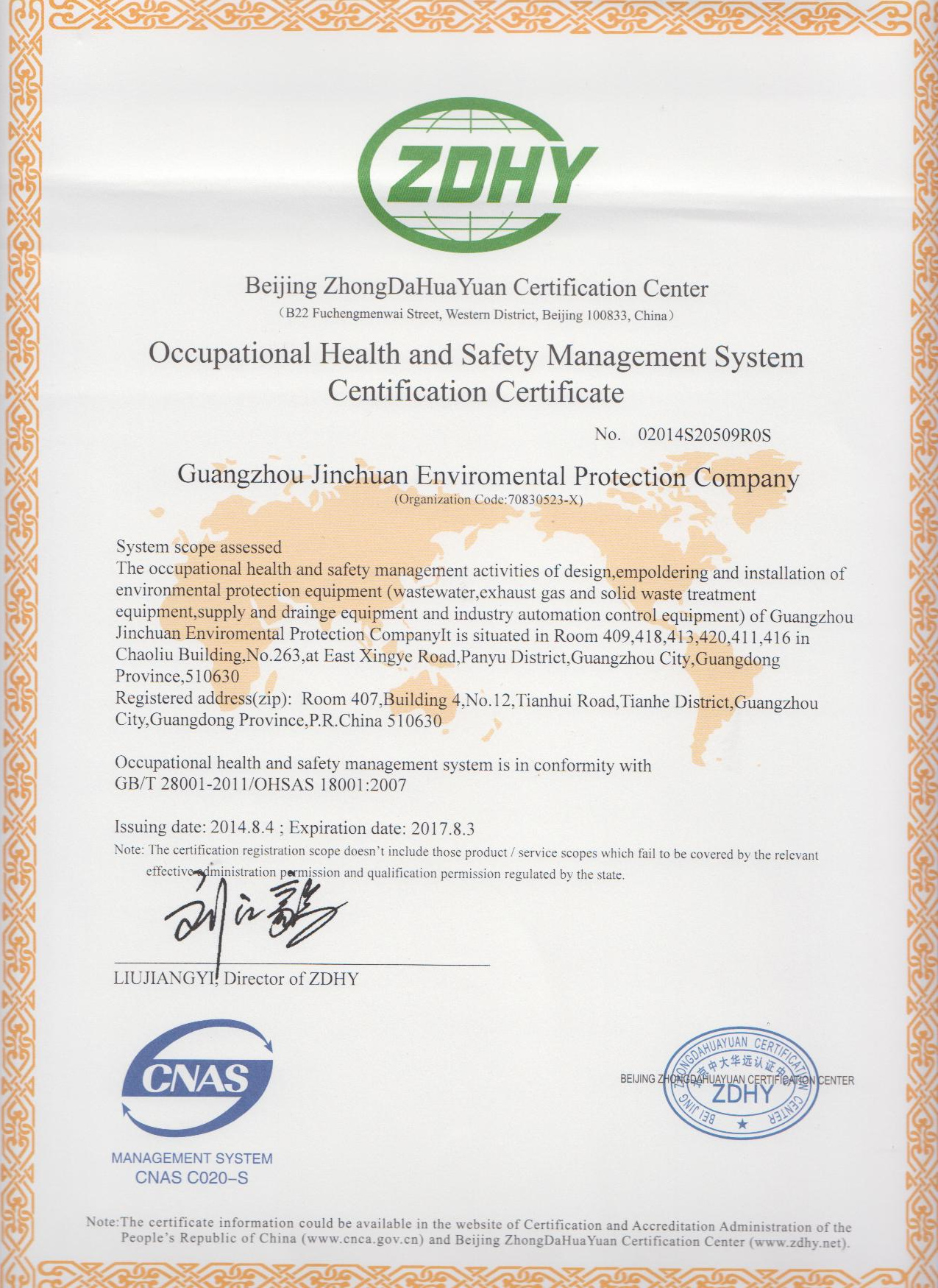 從2013年開始,公司開始著手認(rèn)證的準(zhǔn)備,經(jīng)過多次修訂和完善,最終在全體員工的共同努力下,經(jīng)過北京中大華遠(yuǎn)認(rèn)證中心的認(rèn)證審核,于2014年8月4日正式通過國家標(biāo)準(zhǔn)審核,并取得了職業(yè)健康安全管理體系兩項證書。